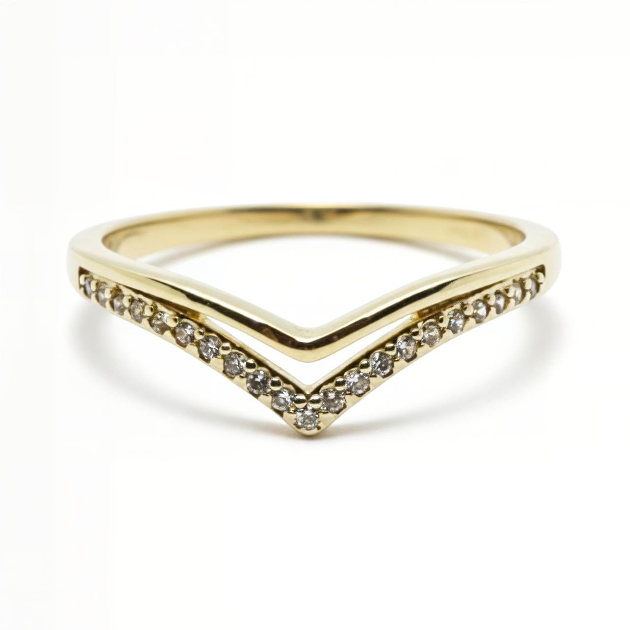 Anel banhado com 10 milésimos de ouro, com acabamento refinado e camadas de verniz protetora, que garantem maior durabilidade, proteção e brilho intenso. Seu design moderno em formato V, aliado às zircônias delicadamente cravadas, proporciona elegância e sofisticação para o dia a dia ou ocasiões especiais.